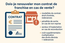 Le renouvellement du contrat de franchise lors d’une vente doit être évalué selon le coût, la politique du réseau et la stratégie du repreneur.
